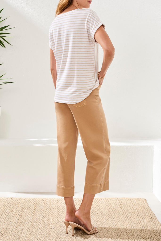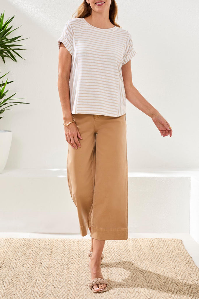 Super soft lightweight Cuffed sleeve knit top with inserts in the color beach